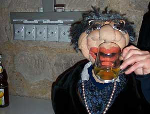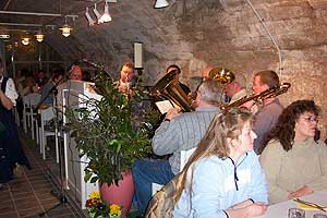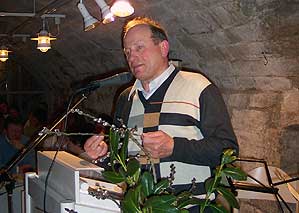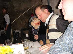 Kellerstiaga ruffzieha kasch“, meinte Hermann Beck. Nicht genug loben könne man die Stücklesbesitzer die ihren Baumbestand pflegen und sich auch in solchen Jahren wie dem letzten, als es massig Äpfel gab, noch den Rücken krumm machten, um das Obst für Apfelsaft und Most aufzuklauben. Hermann Beck appellierte dabei an alle, für das Apfelsaftschorle daheim nur Direktsaft zu verwenden, obwohl dieser teurer ist als die vielen fertigen Apfelschorle der Getränkeindustrie, welche aber samt und sonders aus billigem Konzentrat gemacht würden. Erstens schmecke dieser Saft bedeutend besser und zweitens leiste man damit einen wertvollen Beitrag zum Erhalt der heimischen Apfelsorten und Baumwiesen. Für viel Erheiterung sorgte neben Hermann Beck auch „Anna Aspergler“ eine von Ilsebyll Beutel-Spöri vom Theater „Kleines Spectaculum“ aus dem gleichnamigen Rudersberger Teilort gespielte Handpuppe. Sie meinte unter anderem, in Urbach liege der Schnee in diesem Jahr besonders lange, aber das sei ja kein Wunder, habe man doch einen Schultes, der aus Winterbach komme..... . Zu späterer Stunde sorgte natürlich auch der Most und die traditionellen Volksweisen, gespielt von der „Urbacher Mostkapelle“ für viel Heiterkeit Hermann Beck hatte zuvor zwar etwas warnend den Finger erhoben, ob des Alkoholgehalts der Möste, wartete aber auch mit einem Zitat des Stuttgarter Alt-OB’s Manfred Rommel auf, der einmal sagte (oder zumindest gesagt haben soll): „Wo Trinken keine Schande ist, ist Kotzen keine Sünde“. Und an schwera Kopf, so hatte er versprochen, könne von den beim 20. Urbacher Mostseminar kredenzten Mösten niemand bekommen. Ob’s tatsächlich so war, entzieht sich leider dem Wissen des Chronisten. |