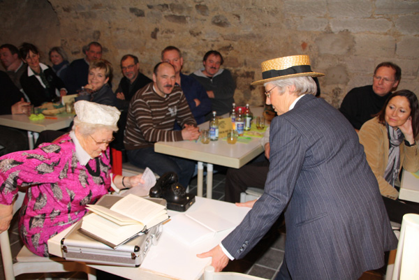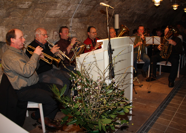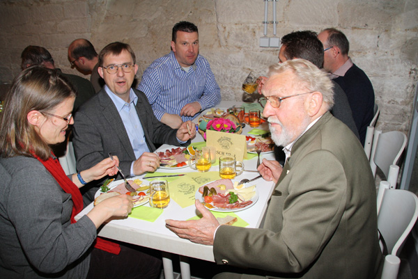 Trotz Schnee und Eis drangvolle Enge beim 27. Urbacher Mostseminar Eine Atmosphäre wie in einer Besenwirtschaft herrschte am vergangenen Samstag im Urbacher Schlosskeller. Obwohl es noch am Tage heftig geschneit hatte und der Winter zurückgekehrt war, ließ sich kaum jemand davon abhalten, die 27. Auflage des Urbacher Mostseminars mitzuerleben und dem Vernehmen nach waren nur wenige Debütanten unter den mehr als 100 Gästen, die „der Schlossherr“ Bürgermeister Jörg Hetzinger begrüßte. Der Urbacher Schultes, inzwischen auch schon mit reichlich Seminarerfahrung gesegnet und somit zum „alten Hasen“ in Sachen Most avanciert, begann seine Rede mit der treffenden Bemerkung: „Moscht braucht dr Ma und muaß er hau. Dieser Auszug aus einem Gedicht des Großheppacher Heimatdichters Kurt Dobler bezieht sich zwar in erster Linie auf die Trinkgewohnheiten der Männer, doch auch die Frauen sind beim Genuss des schwäbischen Nationalgetränks gewaltig auf dem Vormarsch. Kein Wunder, denn, wie Mostprofessor und Seminarleiter Hermann Beck verlauten ließ, vereinige der vergorene Apfelsaft gleich mehrere gute Eigenschaften in sich, für die man sonst eine Menge Geld in Reformhäusern und Drogerien ausgeben müsste. So sorge der Genuss von Most für einen positiven Stoffwechsel und eine gesunde Darmflora (ganz ohne probiotische Zusatzmittelchen oder teure Joghurts!), weiterhin steigere er die Lebhaftigkeit des Organismus’ und schaffe Entspannung durch Anspannung. Was heißen soll, dass sich durch Genuss eines räsen Moschds die Haut strafft und die Most trinkende Damenwelt somit auch ganz ohne Cremes und Sälbchen eine „fatzenglatte“ Haut vorweisen könne, so der Dipl. Getränkeingenieur Hermann Beck, der es wissen muss! Für Männer sei der Most in vergangenen Zeiten ein „leichtes Dopingmittel“ gewesen, fuhr Hermann Beck fort, mit „so 4-5 Liter am Dag“, die ein Bauer bei seiner schweren Feldarbeit in der Regel konsumierte, hätten sich die Bauersleut’ regelrecht „frei geschafft“. Gleichwohl Beck zugeben musste, dass der Most in diesen seligen Zeiten wesentlich „dünner“ gewesen sei, da er schon beim „Einmaischen“ mit reichlich Wasser gestreckt wurde. Beim vergangenen Mostseminar war die Qualität der verkosteten Moste durchweg hoch, obwohl die Geschmacksrichtungen und Verschnitte durchaus unterschiedlich waren. So war beispielsweise ein Most mit Holunderbeeren dabei, ein Zweijähriger sehr milder und runder, zwei klassische „Schwabenmöschde“ und ein anderer mit Quitten. Selten ist es dem Publikum so schwer gefallen, den Siegermost zu küren. Dabei lagen die Stimmenzahlen auch relativ eng beieinander. Das Rennen machte schließlich der Most mit den Quitten, die dem Siegermost wohl das besondere Etwas gaben. Dies hat den Erzeuger, die Familie Schoch aus Wäschenbeuren besonders gefreut, war sie doch zum ersten Mal beim Urbacher Mostseminar dabei. Auf den Plätzen zwei und drei landeten die Moste von Paul Haaga, der damit die Ehre der Urbacher Mosterzeuger rettete, und der Familie Hinderer aus Rudersberg. Dass nicht „Eitel, Freude, Sonnenschein“ bei den Stücklesbesitzern herrscht, wurde schon dadurch deutlich, dass auch im letzten Herbst wieder schlechte Preise für das qualitätvolle heimische Mostobst gezahlt wurde, obwohl es wenig davon gab. Hermann Beck führte das auf den Konkurrenzdruck aus dem Ausland zurück. Billige Apfelsäfte und vor allem auch Mischgetränke (Apfelschorle) würden aus billigstem Konzentrat aus dem osteuropäischen Ausland oder aus China hergestellt, das bei weitem nicht dem Geschmack und der Qualität heimischer Produkte entspreche. So empfahl Beck seinen Zuhörerinnen und Zuhörern nur Getränke zu kaufen, die die Bezeichnung Apfelsaftschorle hätten, denn im Gegensatz zu den vielen Apfelschorlen, die man in den Regalen findet, muss in diesen Getränken auch tatsächlich Apfelsaft enthalten sein. Bürgermeister Jörg Hetzinger verwies in diesem Zusammenhang auf das „Urbacher Apfeljahr 2010“, das von der Urbacher Agenda-Arbeitsgruppe „Urbach miteinander“ ins Lebengerufen wurde. Mit insgesamt 26 verschiedenartigen Veranstaltungen rund um den „Apfel“, die über das Jahr verteilt in Urbach stattfinden, soll die Bevölkerung wieder mehr für das ökonomisch und ökologisch wichtige Thema sensibilisiert werden. Trotz allen ernsten Themen, darf natürlich auch der Spaß beim Mostseminar nicht zu kurz kommen. Dafür sorgten in diesem Jahr zwei Urbacher Originale. Else Söll und Ella Schiek sorgten als „Dia Zwoi vom Döbele“ mit ihren schwäbische Sketchen, Gedichten und Liedern unterstützt von Gemeinderätin Siegrun Burkhardt an der Gitarre, für große Heiterkeit unter den SeminarteilnehmerInnen. Mit unnachahmlicher Gestik und Mimik, stilvollen und gewagten Kostümen und viel schwäbischem Witz verstanden die beiden Damen es, ihr Publikum ein ums andere Mal zu Lachen zu bringen. Auch die „Urbacher Mostband“ ein Ableger des Evangelischen Posaunenchors ist vom „Urbacher Mostseminar“ nicht wegzudenken. Schwäbisches Liedgut und traditionelle Volksmusik vom „Ännchen von Tarau“ bis hin zur heimlichen württembergischen Hymne „Preisend mit viel schönen Reden“ wurde von den Urbacher Bläsern in höchst gelungener Weise wieder dargeboten. Ein weiterer Garant für ein gelungenes Mostseminar sind die Urbacher Landfrauen, die mit einem deftigen Vesper mit dem unvergleichlichen Hegnauhöfer Holzofenbrot eine gute Grundlage für die später folgenden Mostproben schaffen. In diesem Jahr hatten es die Damen im beinahe übervollen Schlosskeller besonders schwer mit ihren Suttenkrügen ständig für Nachschub bei den Seminarteilnehmern zu sorgen. Aber sie schafften es auch diesmal und dafür sei Ihnen an dieser Stelle herzlich gedankt, ebenso wie allen anderen Beteiligten, die einmal mehr dafür gesorgt, dass das Urbacher Mostseminar einmal mehr zu einem Erfolg wurde.