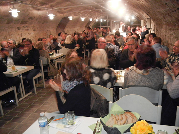 Wie immer beim Mostseminar herrschte drangvolle Enge im Urbacher Schlosskeller. ![]() |